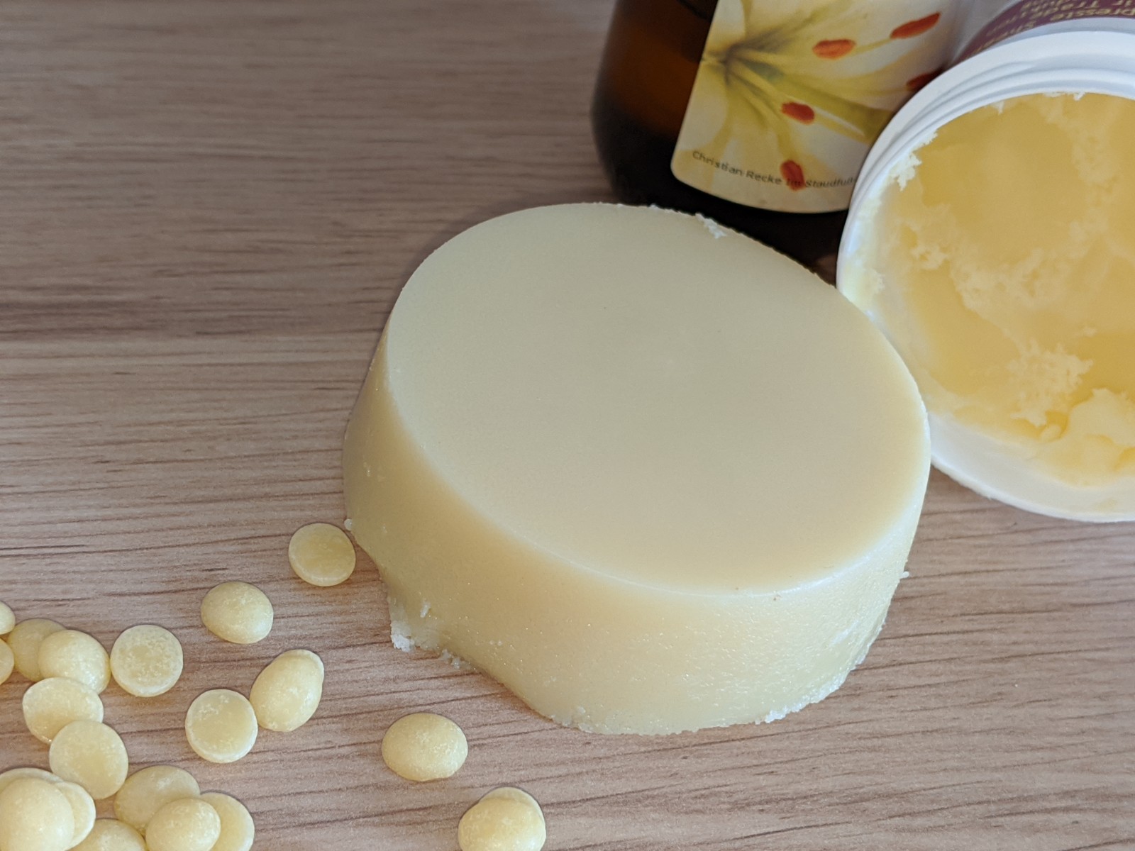 Verzichten solltest du aber nie auf einen großen Anteil fester Fette, da diese erst für die Festigkeit der Duschbutter sorgen.
