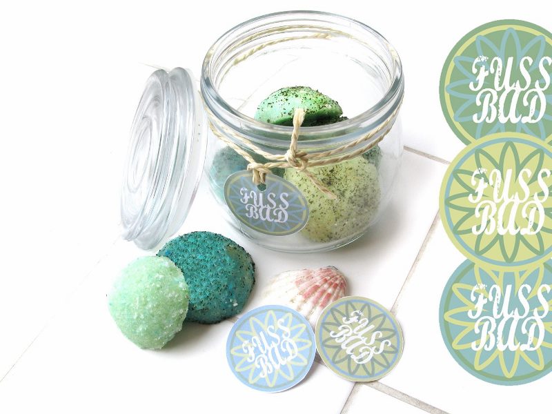 Unser Rezept für selbstgemachte Fuß-Badebomben enthält wenig Fette – damit liegen wir im Sommer goldrichtig. Je nach Geschmack kann mit Lebensmittelfarben gearbeitet werden, sodass frische Blau-, Grün- und Türkistöne entstehen, die uns ans Meer und Strandurlaub erinnern… Passend dazu gibt es runde Labels zum Ausdrucken, die zum Beispiel mit einem Schnürchen am Glas befestigt oder einfach aufgeklebt werden können. Diese Etiketten sind am Ende des Artikels zu finden.