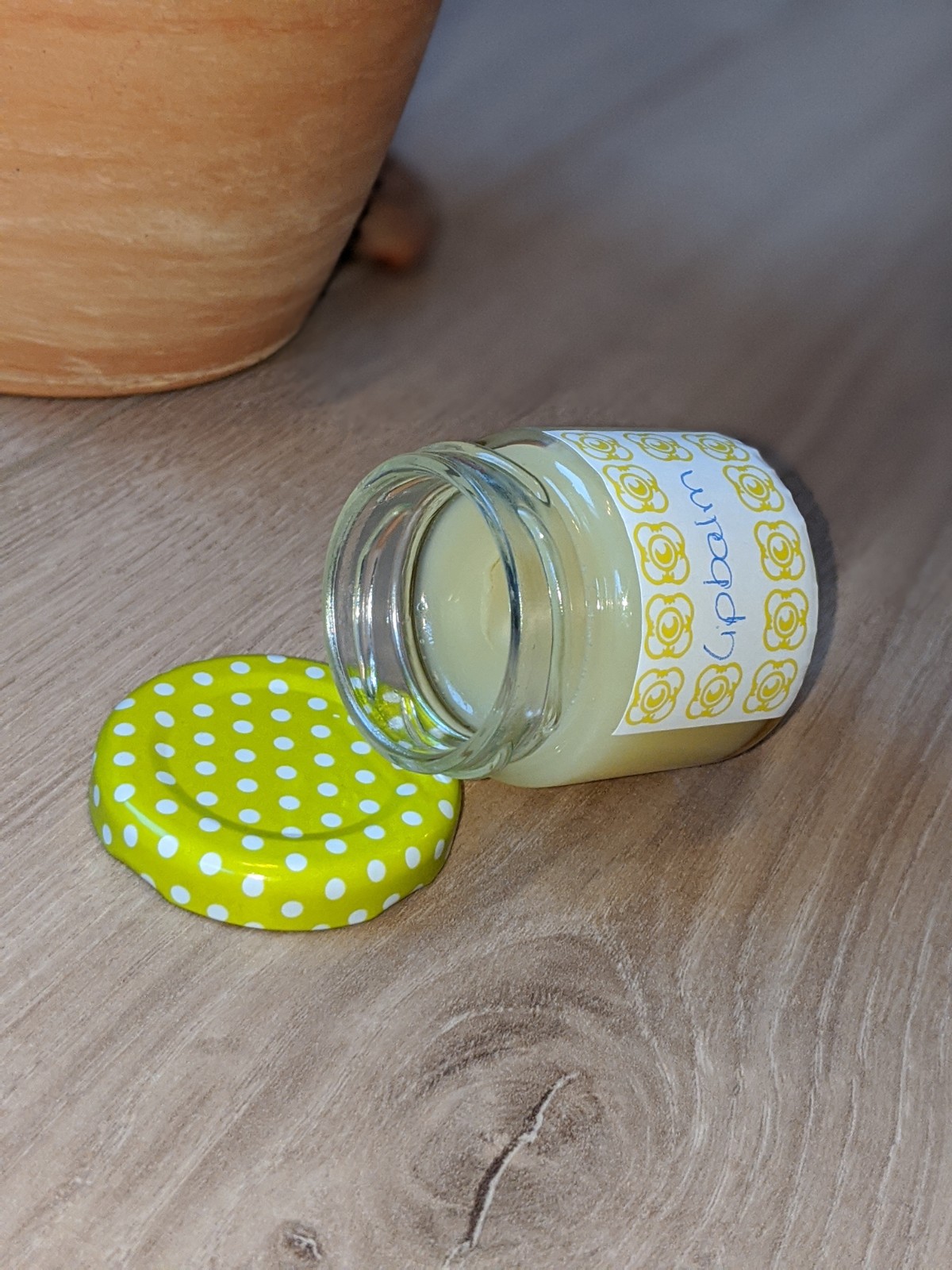 Den noch flüssigen Lipbalm in kleine Tiegel aus Glas füllen und abkühlen lassen.